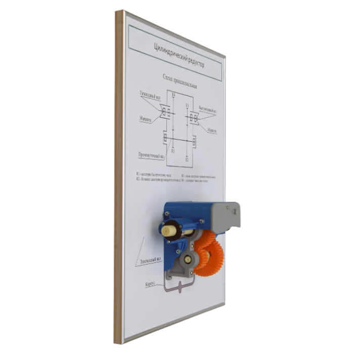 Плакат планшет с демонстрационной моделью «Цилиндрический редуктор» представляет собой планшет формата А2, который размещается в настенном варианте.