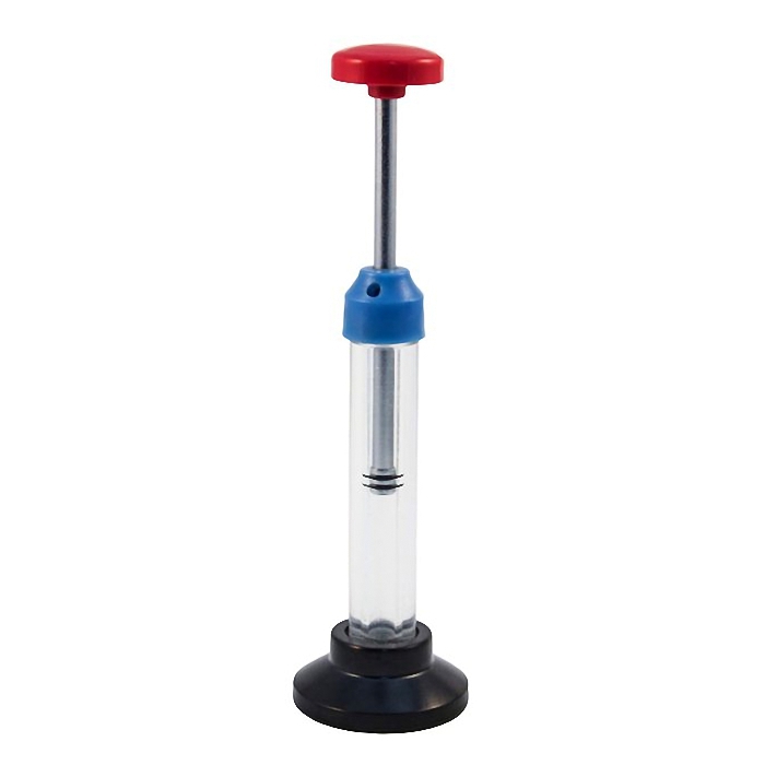 Прибор представляет собой толстостенный прозрачный цилиндр, внутри которого перемещается поршень на металлическом штоке с рукояткой. Для лучшей герметичности и скольжения рабочие поверхности поршня и цилиндра необходимо смазать тонким слоем вазелина или машинного масла. Для проведения работ необходимы: вата, смоченная спиртом или эфиром, тополиный пух.