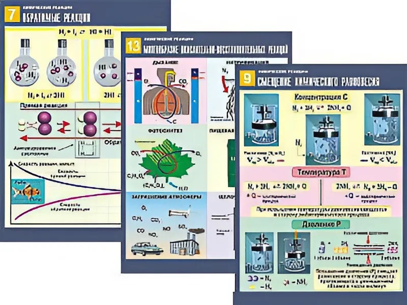 Комплект таблиц по химии демонстрационных "Химические реакции" (14 таблиц, формат А1, ламинированные) - fgospostavki.ru - Рязань