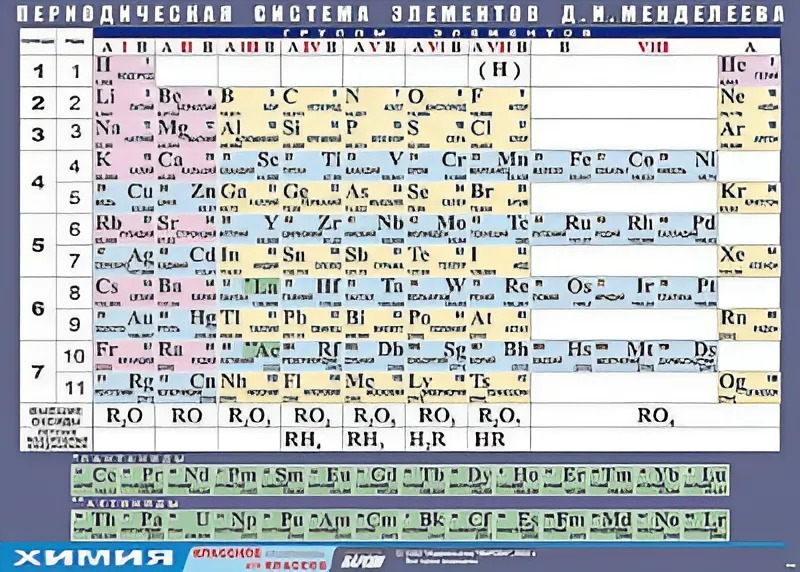 Таблица демонстрационная "Периодическая система элементов Д. И. Менделеева"