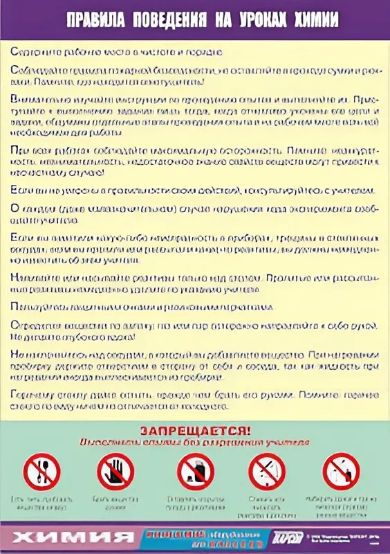Таблица демонстрационная "Правила поведения на уроках химии" (винил 100х140)