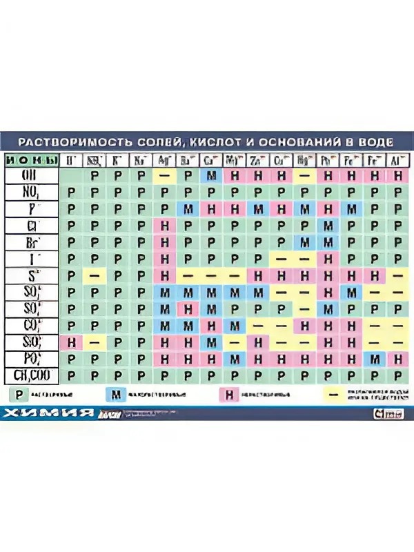 Таблица демонстрационная "Растворимость солей, кислот и оснований в воде"