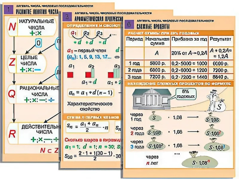 Комплект таблиц по алгебре "Алгебра. Числа. Числовые последовательности" (6 таблиц, формат А1, ламинированные) - fgospostavki.ru - Рязань