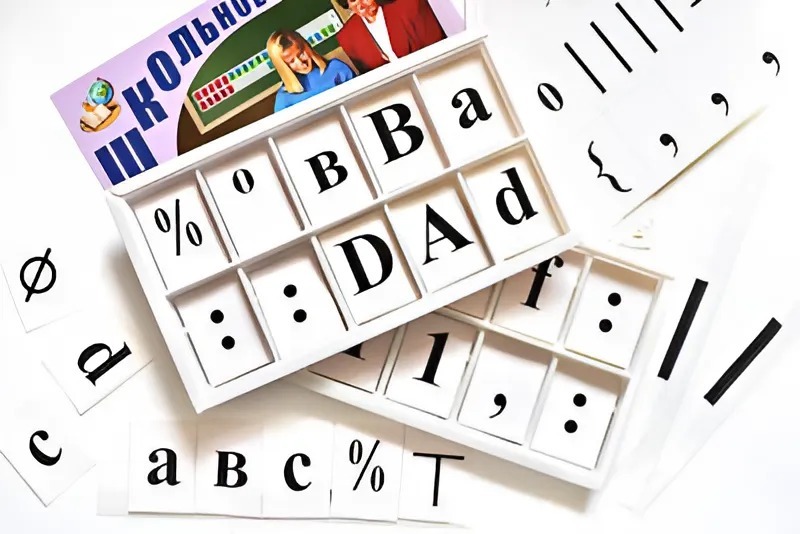 Пособие представляет собой ламинированные пленкой листы с напечатанными на них цифрами, буквами и математическими знаками. В комплекте представлены латинские прописные и строчные печатные буквы.