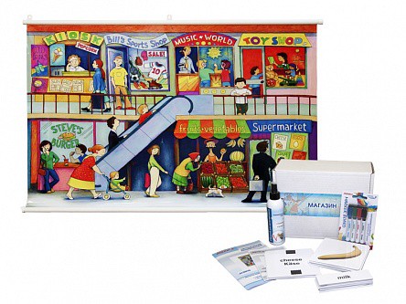 Магнитно-маркерный ситуационный плакат "Магазин" с набором магнитных карточек + методические рекомендации (иностранный язык) - fgospostavki.ru - Рязань