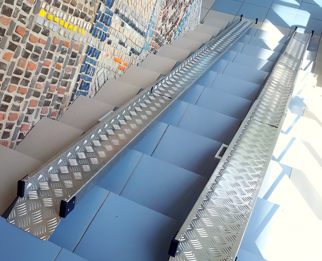 - Универсальность. Узкие лестничные площадки большинства многоквартирных домов и многих общественных мест просто не предназначены для установки стационарных пандусов. В то же время для применения складных пандусов нет никаких ограничений. Телескопические конструкции используют в практически любых учреждениях и зданиях, обеспечивая свободу перемещения людям в инвалидных колясках и родителям с детскими колясками.