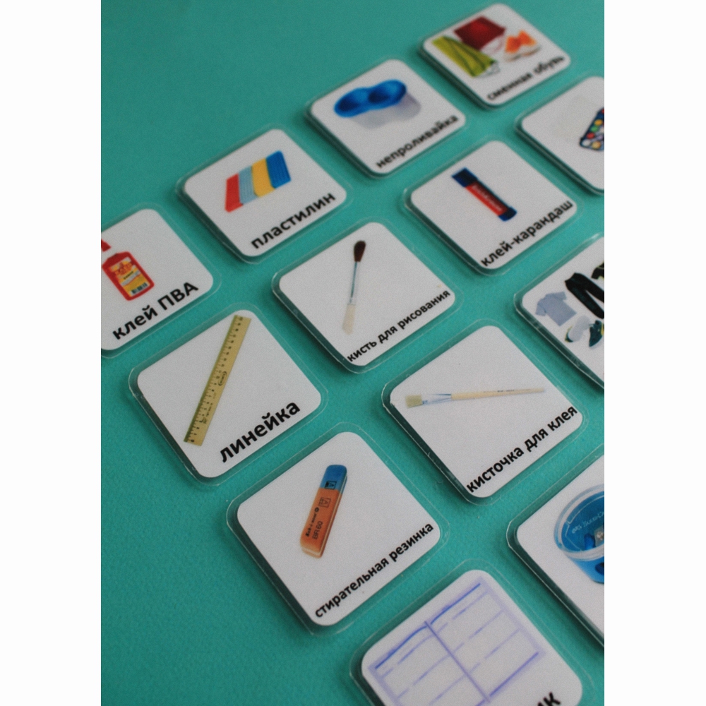 Карточки PECS – система альтернативной коммуникации для детей, у которых трудности с речью и общением. Карточки "Школьные принадлежности" помогут вашему ребенку в повседневной жизни и в школе, уменьшат неприемлемое поведение, способствуют улучшению взаимопонимания. Они пригодны для использования в коммуникативных книгах и визуальных расписаниях.