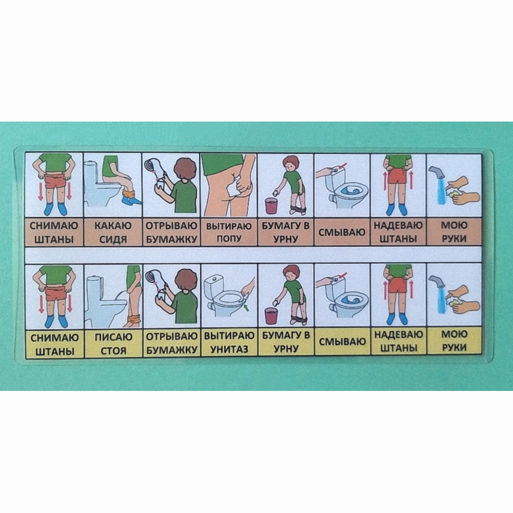 Самостоятельность в туалете - очень важный навык. Визуальная последовательность поможет как на ранних этапах обучения - пояснит какие действия в какой последовательности нужно выполнять. И может остаться в качестве подсказки тогда, когда навык будет освоен.