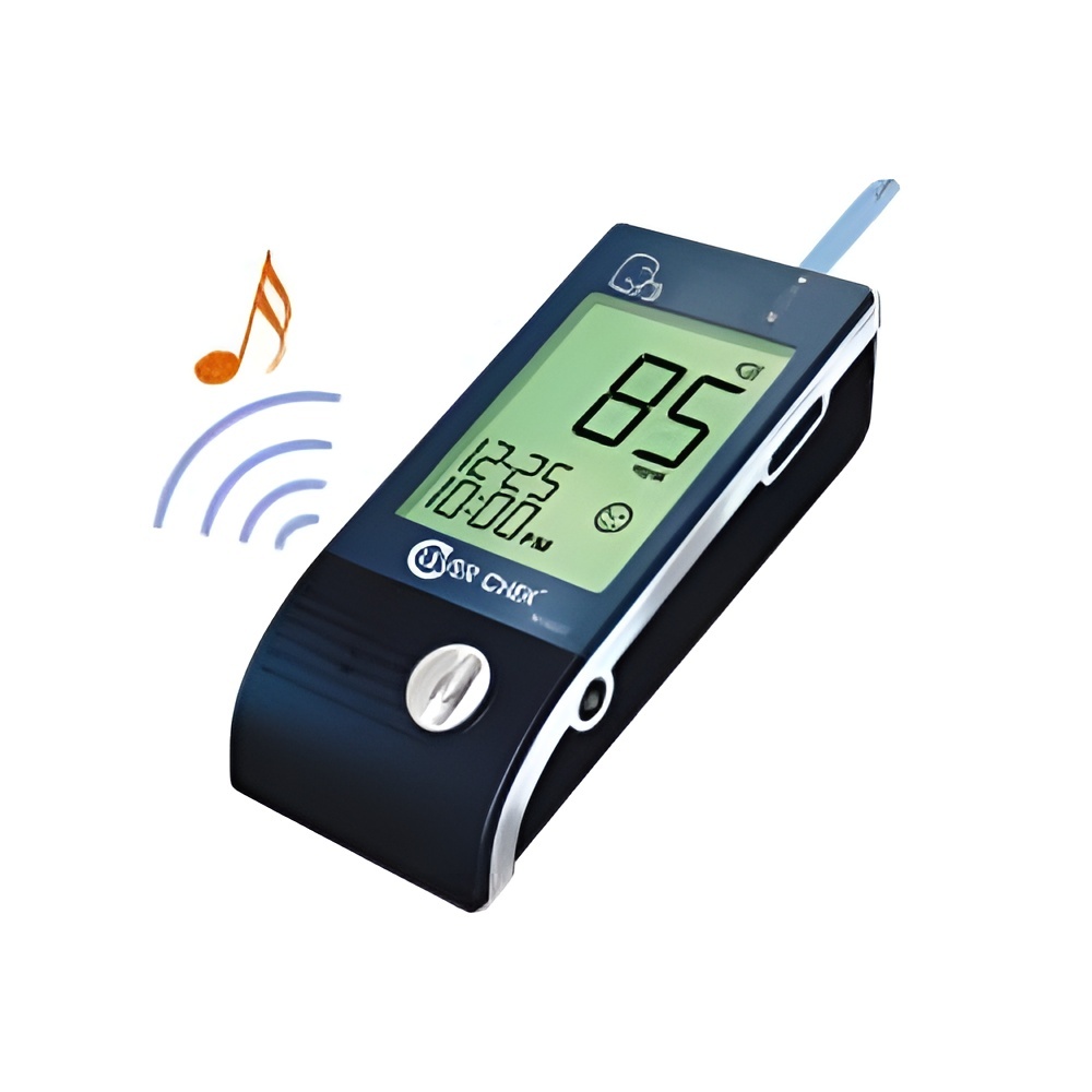 Глюкометр предназначен для определения уровня глюкозы (сахара) в крови в домашних условиях для слабовидящих и незрячих людей. Основная особенность — это способность сообщать результат измерения голосом. Глюкометр специально сконструирован для людей ослабленным зрением.