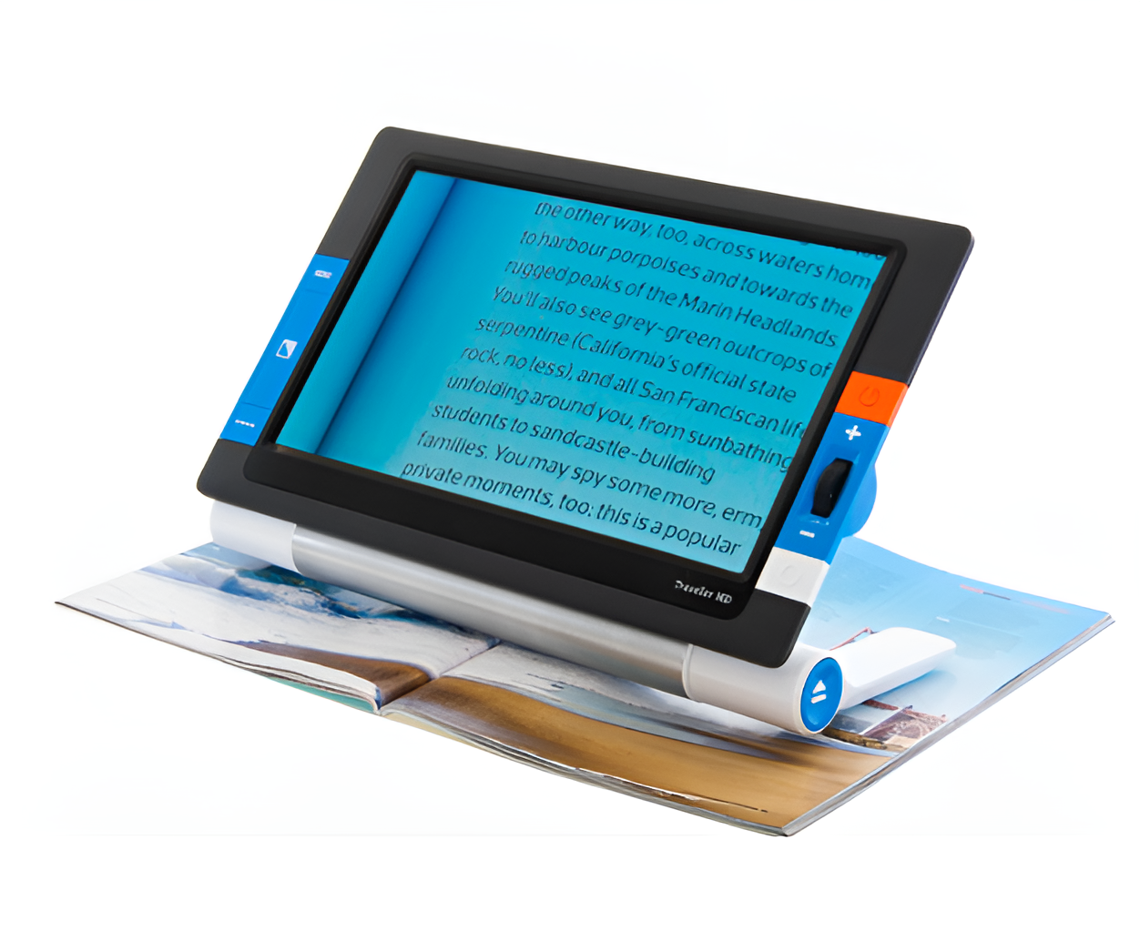 Портативный видеоувеличитель Traveller HD был специально разработан для плавного и комфортного чтения. Большой экран с диагональю 13.3 дюйма, обеспечивающий изображение высокой четкости, а также набор уникальных запатентованных технологий позволяют легче распознавать отображаемый текст. Яркость экрана может быть настроена от ультраяркого до мягкого и чёткого значения.