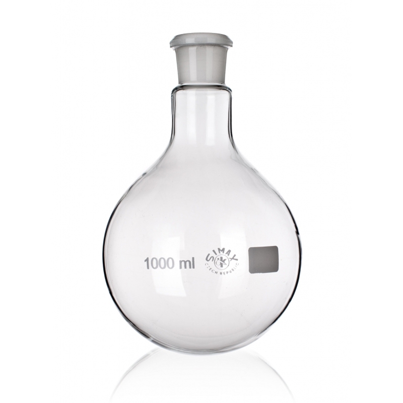 Колба круглодонная 1000 мл предназначена для нагревания растворов в различных химических процессах, связанных с перегонкой веществ, в ходе выполнения лабораторных и демонстрационных опытов в рамках изучения курса химии.