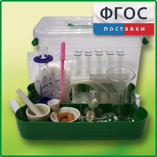 Лоток с лабораторной посудой и принадлежностями в индивидуальной упаковке используется при проведении практических и лабораторных работ по химии в 8-11 классах общеобразовательной школы. Лабораторная посуда набора размещается в удобном лотке с ложементами, выполненном из ударопрочного полистирола. Набор приобретается из расчета 1 шт. на двоих учащихся.