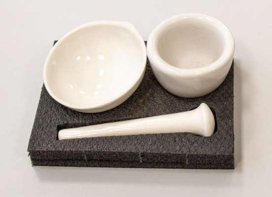 Набор используют при выполнении лабораторных опытов по химии. Выпарительная чаша применяется для выпаривания до сухого остатка жидкостей нейтрального, щелочного и кислого характера. Ступка и пест применяются в лабораториях для тонкого измельчения небольших количеств твердых веществ и тщательного перемешивания нескольких веществ
