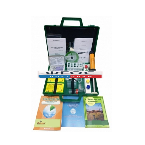 • принадлежности (ножницы, пинцет, ложка-шпатель, лупа, мерные калиброванные пробирки, мешки полиэтиленовые, специальные пипетки-капельницы, поднос-лоток (16×26 см), предметные стекла, склянка, стакан для приготовления почвенных вытяжек, фильтры бумажные, салфетки, штатив для калиброванных пробирок);
