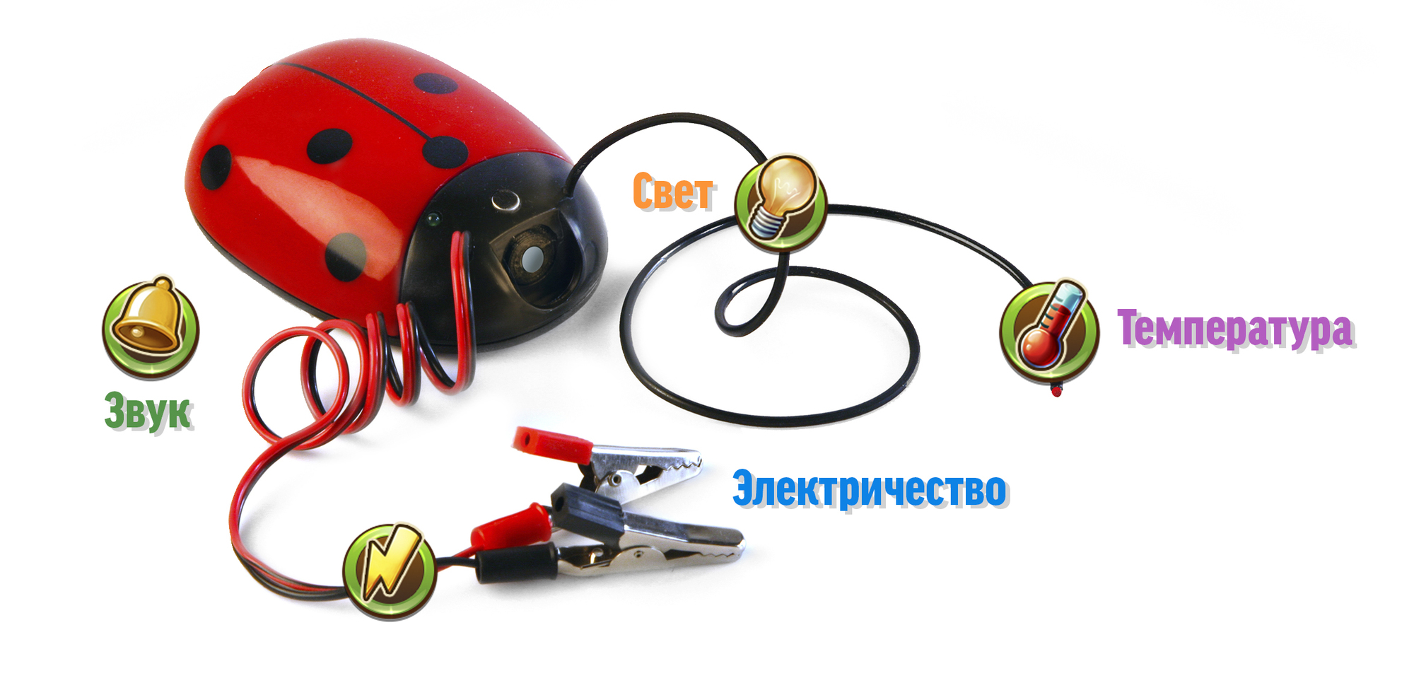 В ходе занятия с комплектом дети проводят эксперименты с использованием мультидатчика в виде «божьей коровки», а мультимедийный интерактивный герой Наураша ставит ребенку задачи и комментирует результаты экспериментов.
