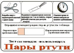 Тест-система «Пары ртути» является средством первичного обнаружения ртутной загрязнённости. Она предназначена для выявления опасности на уровне, предельном при продолжительности рабочей смены.