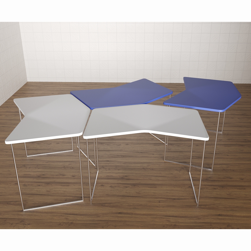 Стол имеет легкую и простую конструкцию, состоит из 4-х отдельных столиков белого и голубого цветов, которые могут использоваться по отдельности, а при необходимости – сдвигаться в единую конструкцию. Детский стол "Стрелочки" нужен для оснащения учебными местами групп в ДОУ, коррекционных и развивающих центрах.