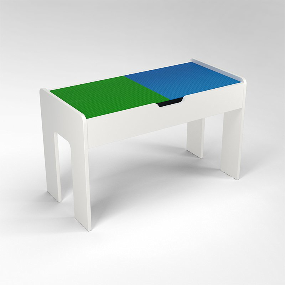 Подходит для серий LEGO: Friends, Duplo, City, Creators. Детали хранятся внутри мебели, верхнее полотно служит рабочим полем. На крышке можно собирать конструктор, лепить, обучаться письму и чтению. Это легкая конструкция для крупных и мелких элементов. В столе помещается до 12-ти конструкторов.