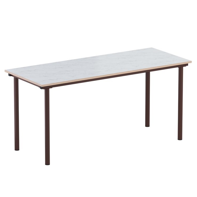 Стол изготавливается на металлическом каркасе круглого сечения, покрытого стойкой к химическим и механическим воздействиям полимерно-порошковой краской, на свободных концах труб установлены заглушки из ударопрочных полимеров.