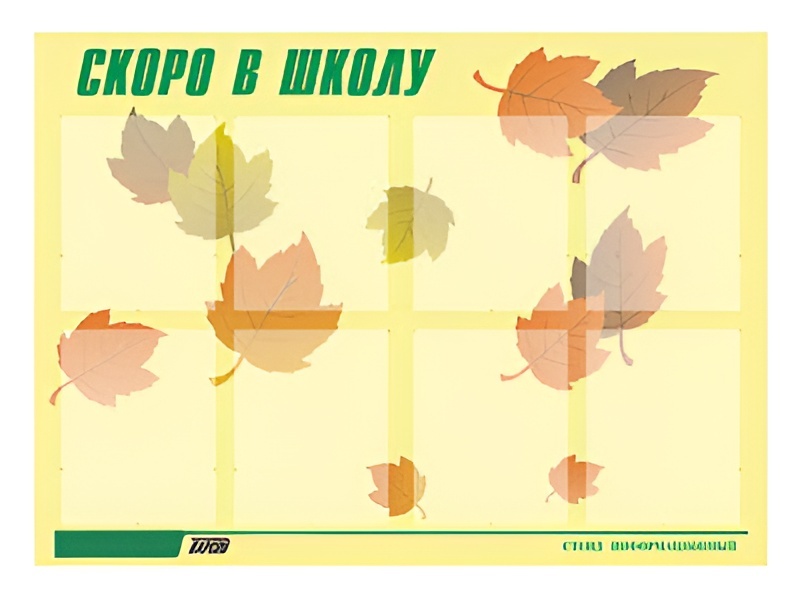 Стенд информационный для ДОУ "Скоро в школу" (80х110см, 8 карм., алюм. проф.)