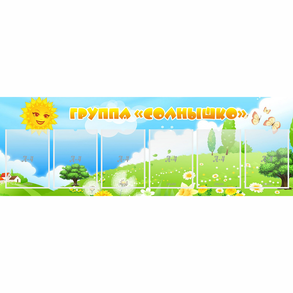 На стенде имеется целых шесть пластиковых прозрачных карманов, расположенных в один ряд. Иногда такое решение может оказаться единственной возможностью удачно разместить всю необходимую информацию. А яркая картинка не даст стенду затеряться в любом интерьере.