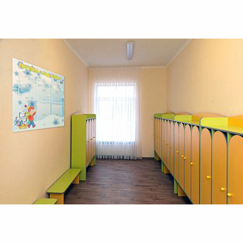 Дизайн стенда выполнен в зимних мотивах: сугробы, снеговые тучи, кубики льда. И на этом фоне невероятно красивые фигурные снежинки. Но зима не пугает мальчика с расписными санками.