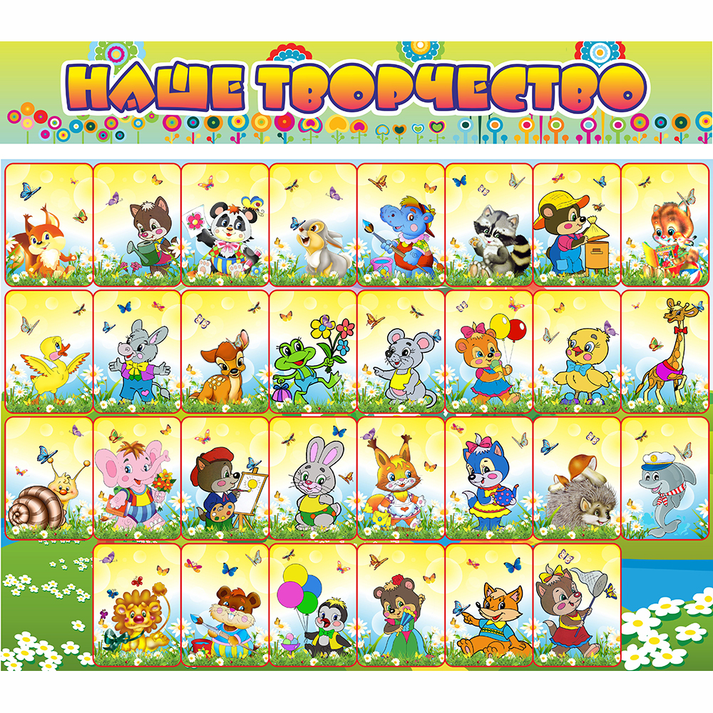 Этот стенд разделён на 30 отделов, в каждом из которых живёт забавный рисованный персонаж. Каждый ребёнок сможет выбрать себе место для размещения рисунков на свой вкус. А крепление с помощью магнитов позволяет легко и просто менять рисунки по мере необходимости.