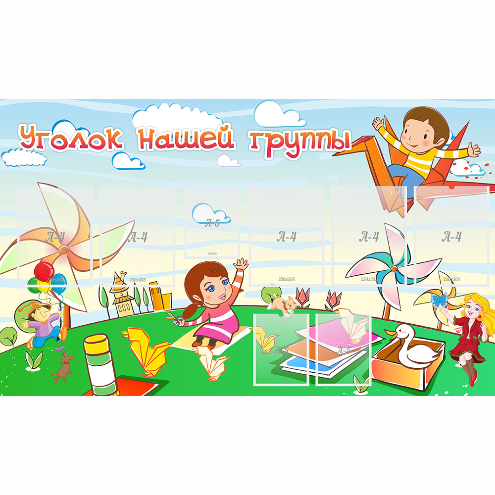 Информационный стенд «Уголок нашей группы» станет отличным местом для размещения важной информации, касающейся группы детского сада, ее маленьких участников и воспитателя. В специальных карманах можно размещать фотографии, рисунки, плакаты, важные объявления, распорядок дня и прочие информационные материалы для детей и их родителей.