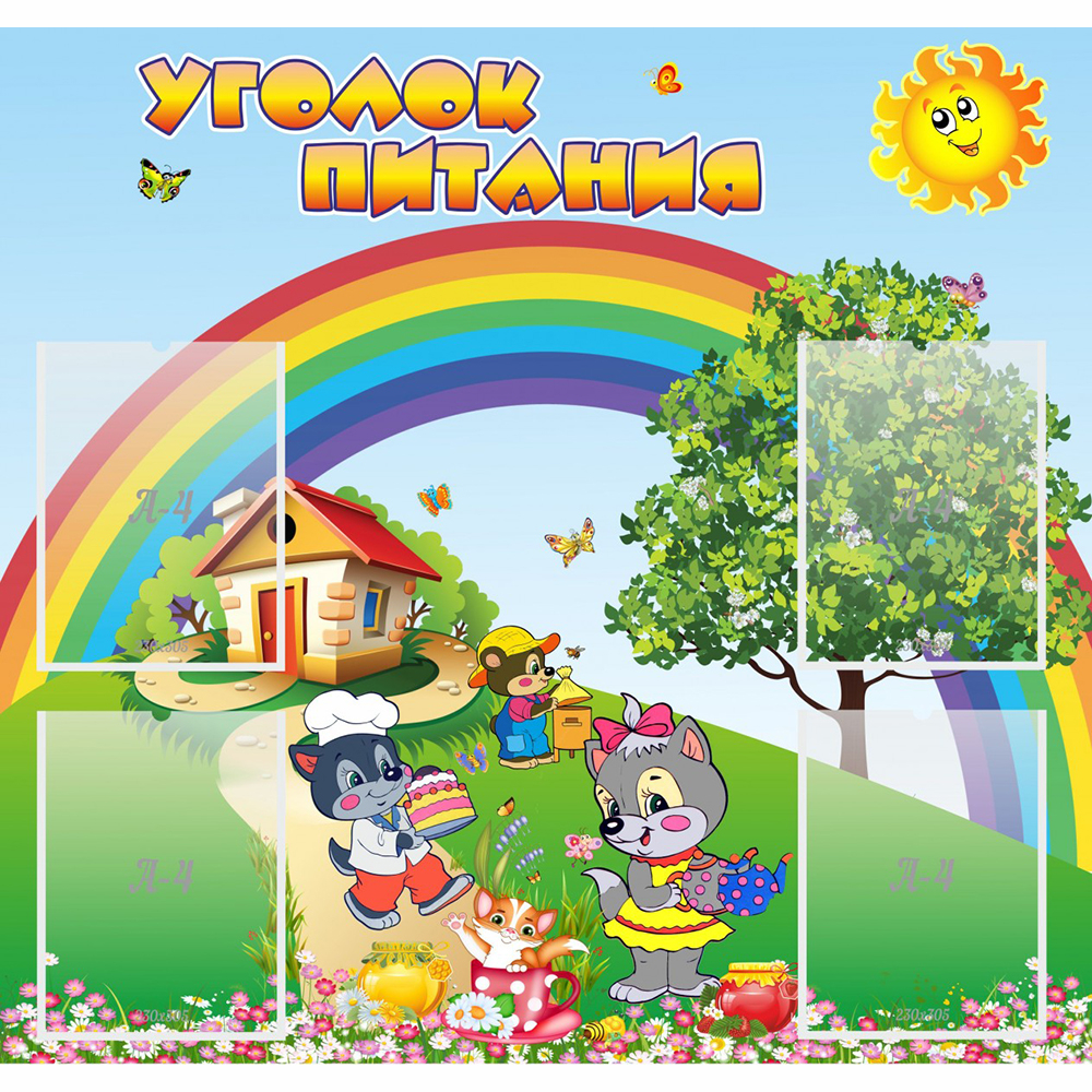 Подходит для оформления группы, обеденной зоны или столовой в детском саду. Яркий, запоминающийся дизайн стенда отлично впишется в интерьер дошкольного заведения.