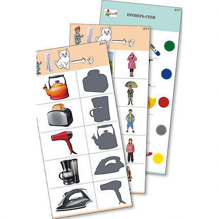 Пособие состоит из 10 полноцветных, напечатанных на картоне и ламинированных пленкой карточек. Является частью игрового набора "Обучающий калейдоскоп для дошкольного образования".