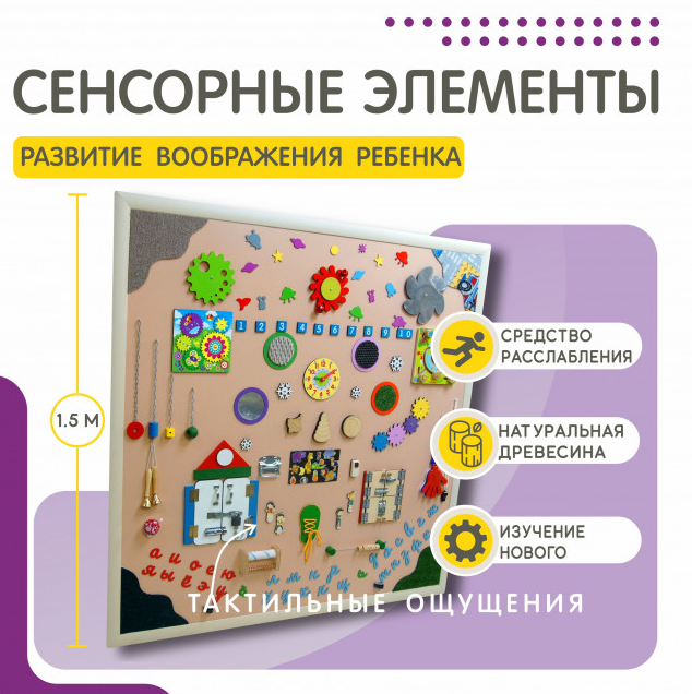 • Развитие мелкой моторики и координации движений. Бизиборд предлагает ребенку разнообразные задания, которые требуют точности движений и моторной активности.