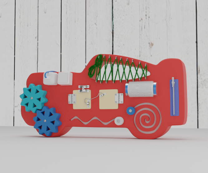 Бизиборд в виде машинки является удивительной игрой для детей раннего возраста и до 7 лет, которая не только развлекает и удивляет. Она развивает в ребенке логику и мышление, концентрацию внимания и память, что отлично сказывается на интересе малыша в школе и детском саду. Данная модель бизиборда выполнена из безопасных и прочных материалов: металла, пластика и дерева, что позволяет пользоваться игрой с раннего возраста. Все элементы развивающей доски крепко скреплены между собой, а главное, надежно фиксируются в «рабочем» состоянии.