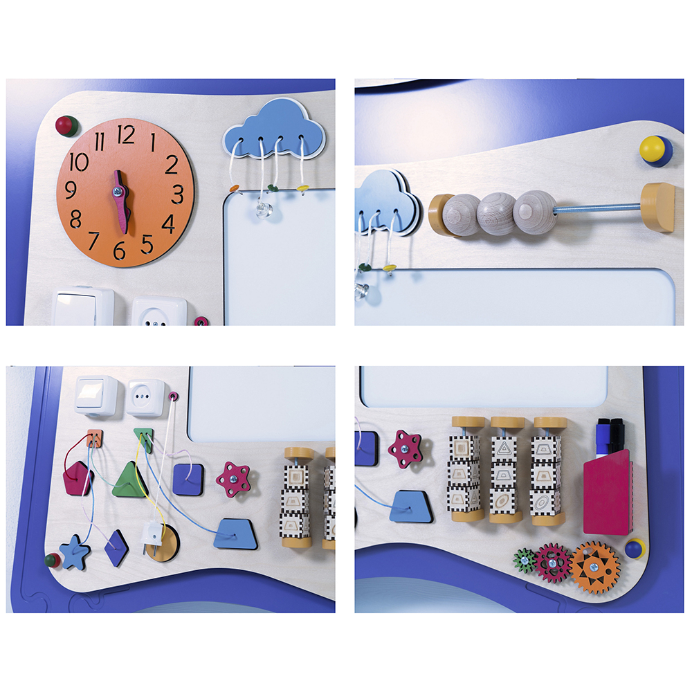 Развивающий сенсорный Бизиборд «Мип» украсит стену любого образовательного учреждения. Необычный внешний вид непременно привлечет внимание детей, а встроенные развивающие элементы займут их на долгое время.