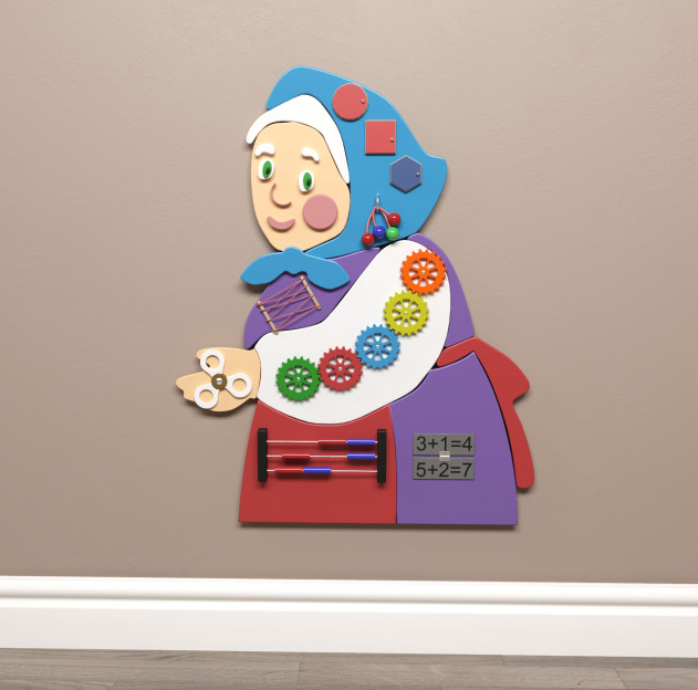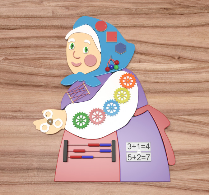 Бизиборд в виде бабушки прекрасно подойдет для занятий с детьми в дошкольный учреждениях, школах, а также детских центрах, радуя детей изо дня в день, развивая самые лучшие качества малыша.