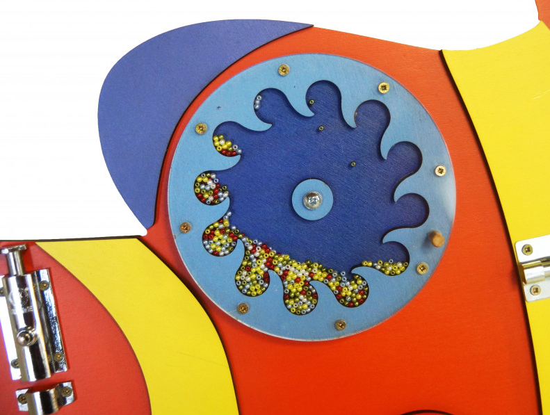 • Малыш касается пальцами одну шестеренку, она цепляет краями другую, и это приводит в движение весь ряд колесиков.