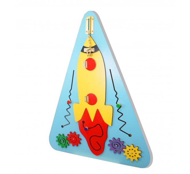 • Логическое мышление и пространственная ориентация. Фигура ракеты и разнообразные элементы на Бизиборде в виде ракеты помогают развить логическое мышление и воображение. Ребенок будет учиться устанавливать связи между разными элементами и ориентироваться в пространстве.