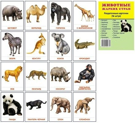 Раздаточные карточки "Животные жарких стран" - fgospostavki.ru - Рязань