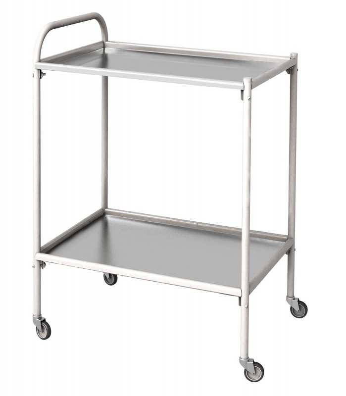 Столик процедурный передвижной металлический с двумя полками из нержавеющей стали колеса мебельные