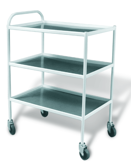 Столик инструментальный передвижной металлический с тремя стеклянными полками (мебельные колеса)