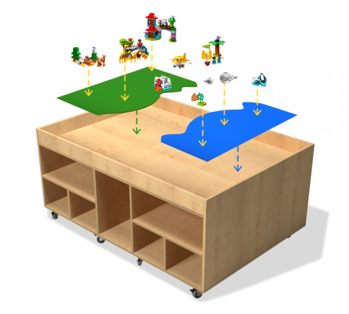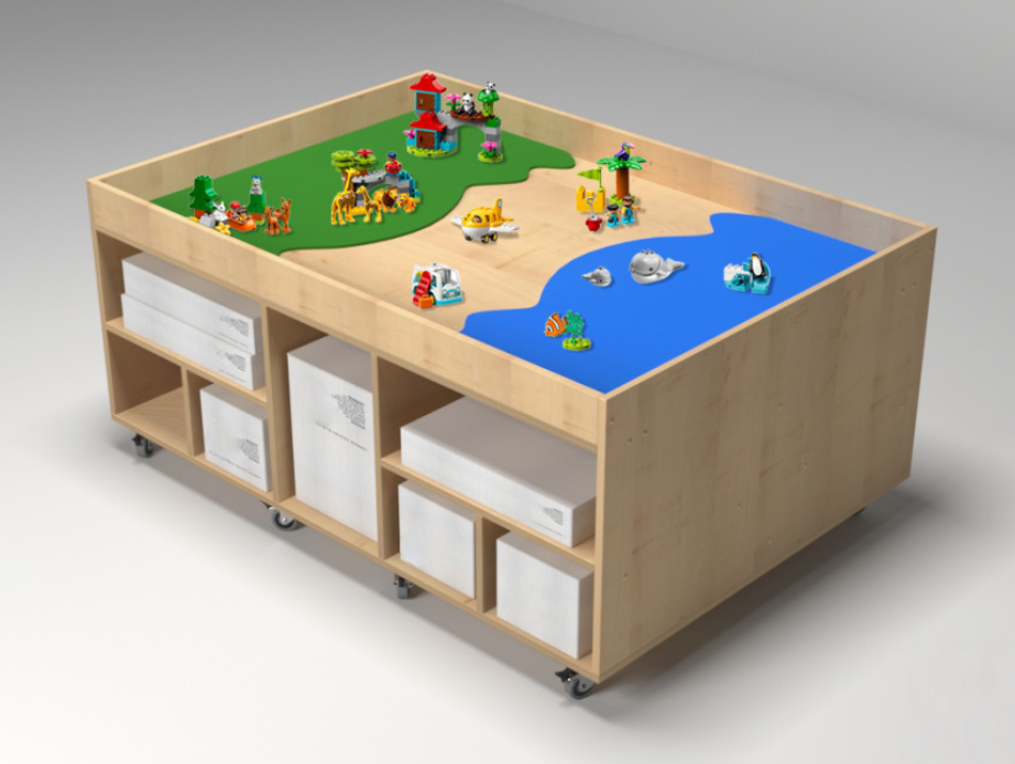 • Большая площадь столешницы – способствует проведению групповых занятий, удобно располагаться с любой стороны игрового стола.