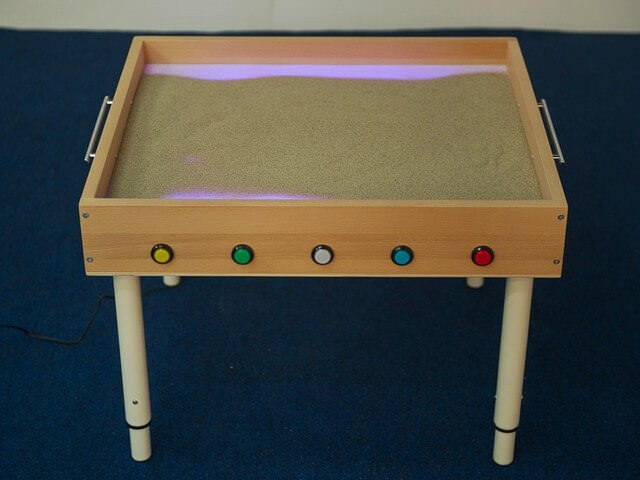Подсветка стола сделает эти картины более эффектными и выразительными. Стол с песком можно использовать и в учебе – попросите ребенка написать цифры, буквы или свое имя. Не стоит бояться, что песок высыпется наружу - высокие бортики не позволят этому произойти. Благодаря регулируемым по высоте ножкам, стол могут с комфортом использовать дети разных возрастов. Переключение подсветки стола осуществляется при помощи кнопок, вмонтированных в корпус стола.