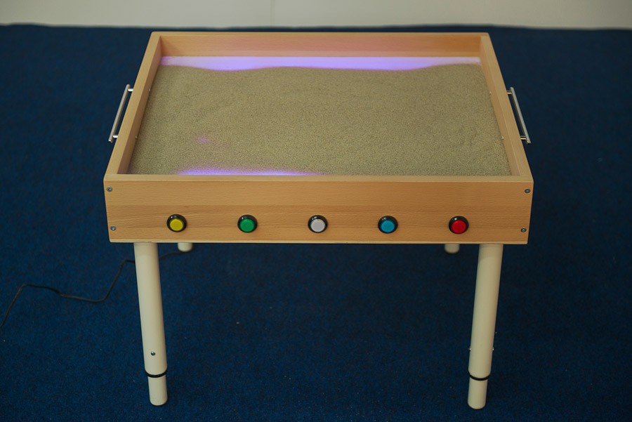 Высокие бортики не позволят песку высыпаться наружу. Благодаря регулируемым по высоте ножкам, стол могут с комфортом использовать дети разных возрастов. Переключение подсветки стола осуществляется при помощи кнопок, вмонтированных в корпус стола.