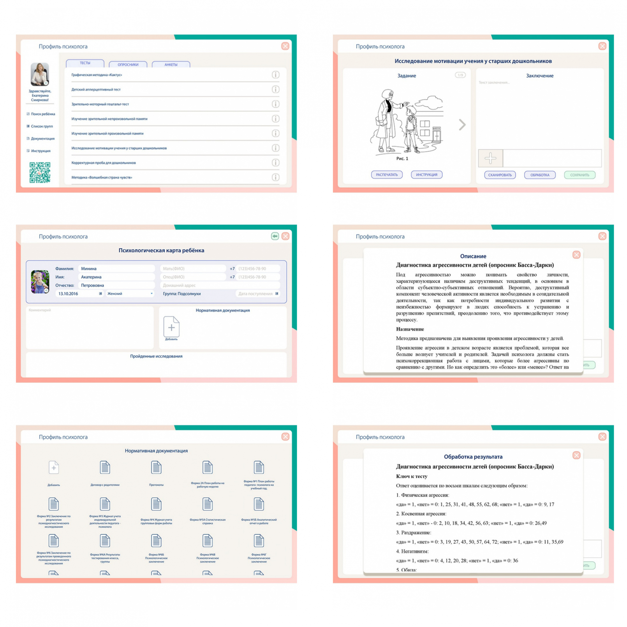 «Профиль психолога» позволяет заводить карточку ребёнка, отслеживать историю работы с ним, фиксирует результаты исследований, формирует готовые отчеты специалисту. Специалист может помещать проективные рисунки детей в профиль ребенка.