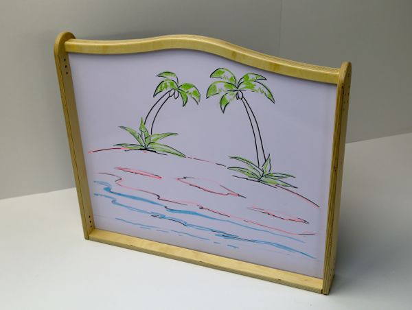 На одной из сторон панели можно писать и рисовать маркерами. Она также является магнитной - к этой стороне можно прикреплять с помощью магнитов любые рисунки и записи.