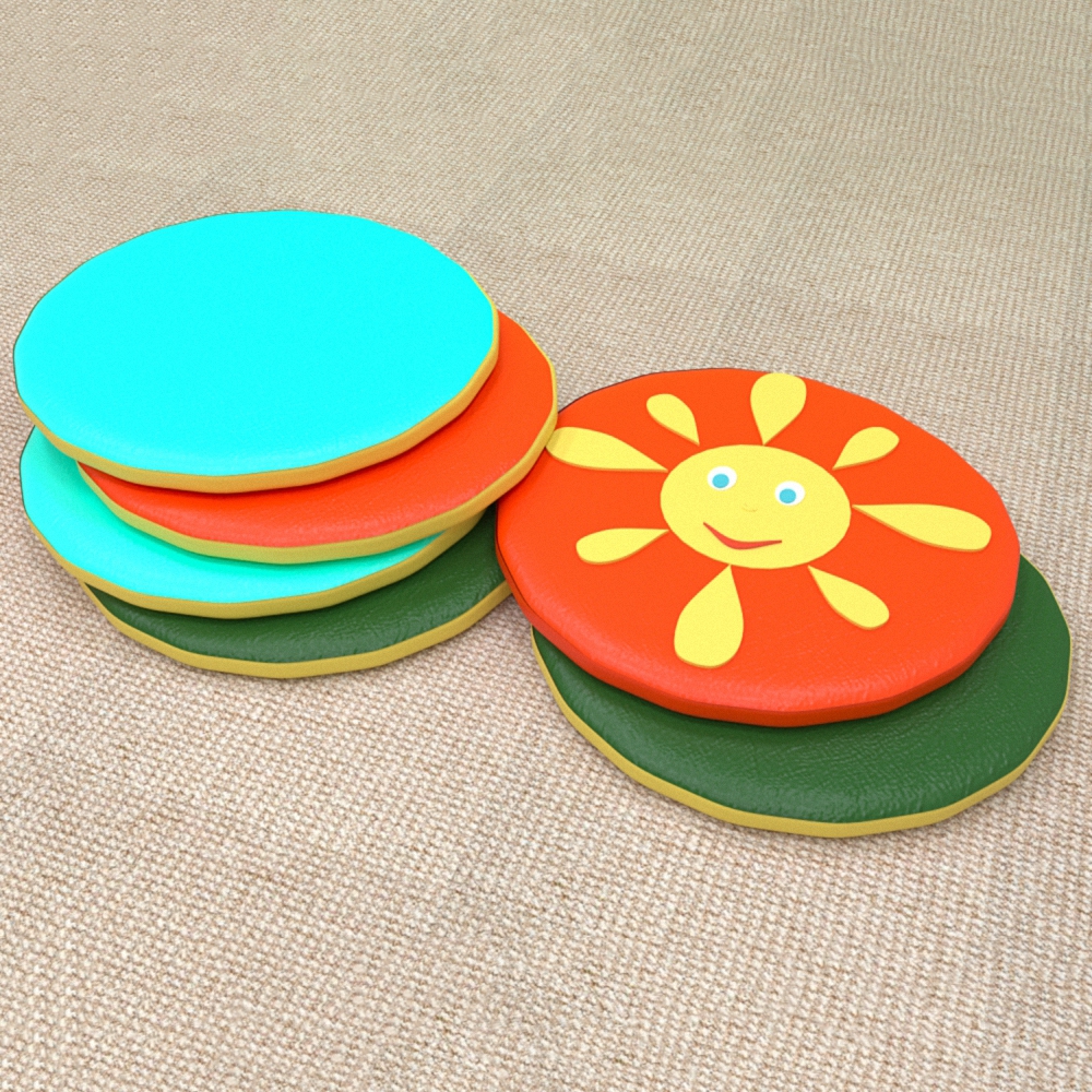 Игровой набор Солнышко - спортивно-игровая разновидность детских бескаркасных модулей. Внешне представляет из себя набор мягких поролоновых дисков одинакового диаметра и разных по толщине. Диски не соединены между собой, что позволяет свободно перемещать их в пространстве с целью составления различных комбинаций для выполнения упражнений – по разложенным на полу дискам можно просто ходить, обучаясь соблюдению равновесия и тренируясь сохранять правильную осанку, или перепрыгивать её поперёк, использовать дорожку в качестве своеобразного рубежа, через который нужно перекинуть предмет (мячик, грузик - мешочек с наполнителем) – широта диапазона использования зависит от фантазии педагога; кроме этого, набор «Солнышко» используется для изучения цветов. Несомненные плюсы этой дорожки – отсутствие твердого, жесткого каркаса и наличие мягкого, упругого наполнителя.