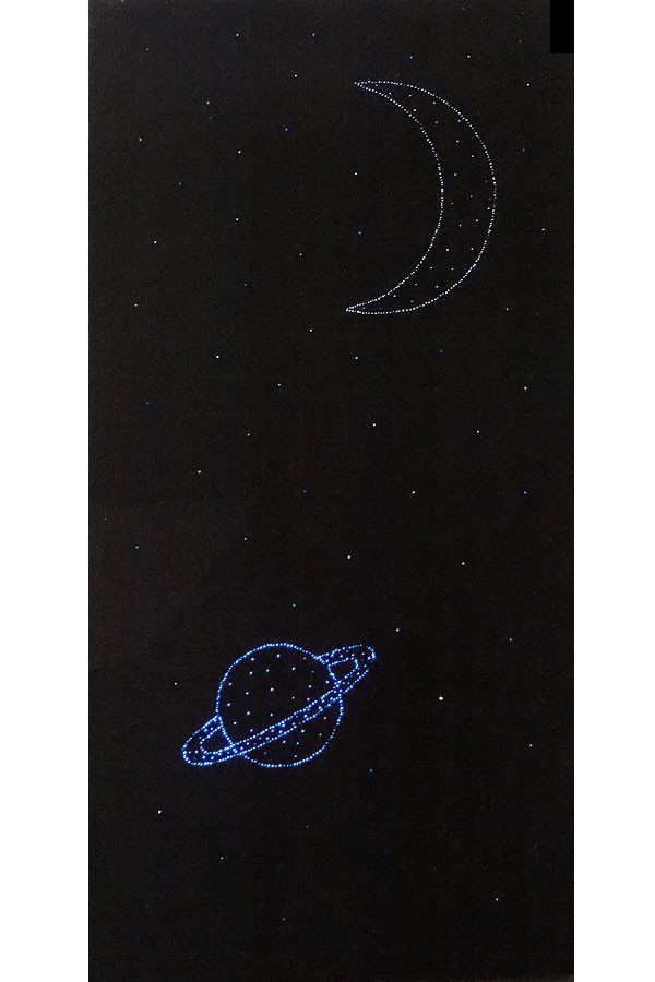 Настенное панно с мерцающими звездами на фоне темного неба. Мерцающие полумесяц, сатурн, звездный фон. Размеры:1000х500 мм или 700х700 мм.