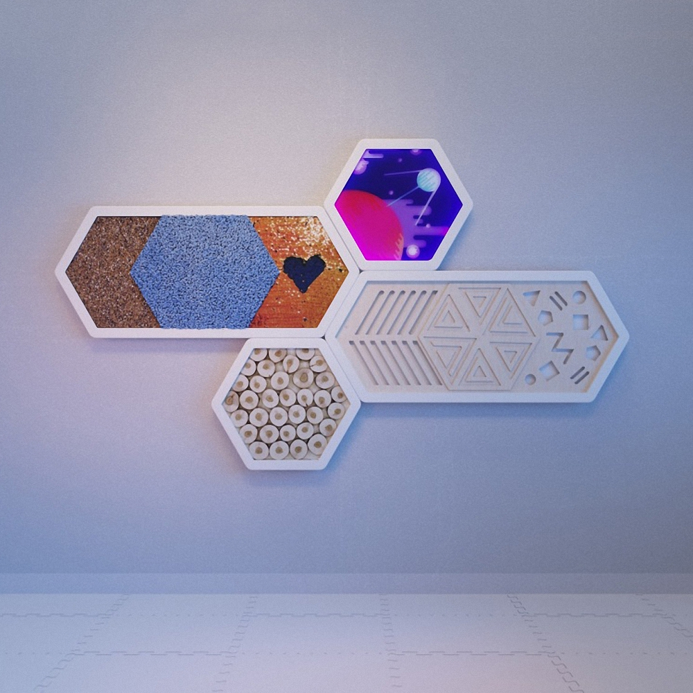 Главная Каталог Оборудование для сенсорных комнат Тактильное оборудование Декоративная тактильная панель - «Рельефные многоугольные формы»