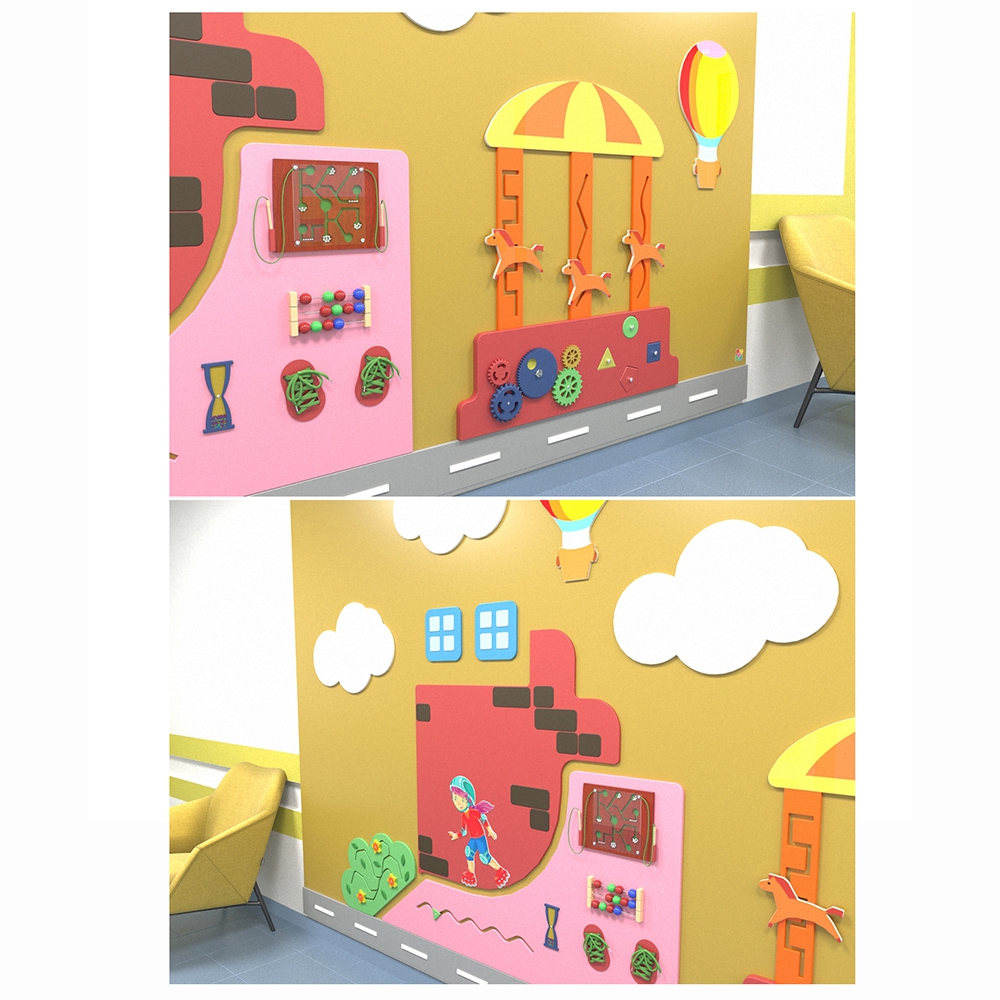 Огромная настенная панель «Активный отдых» - идеальное решение в вопросе оформления детской игровой зоны для просторных помещений. Выполнена в едином стиле и оснащена множеством развивающих и развлекательных приспособлений.