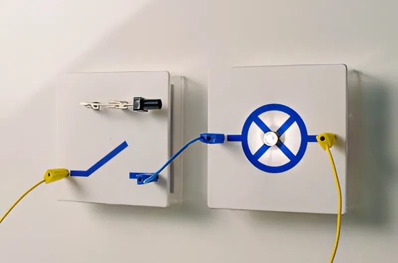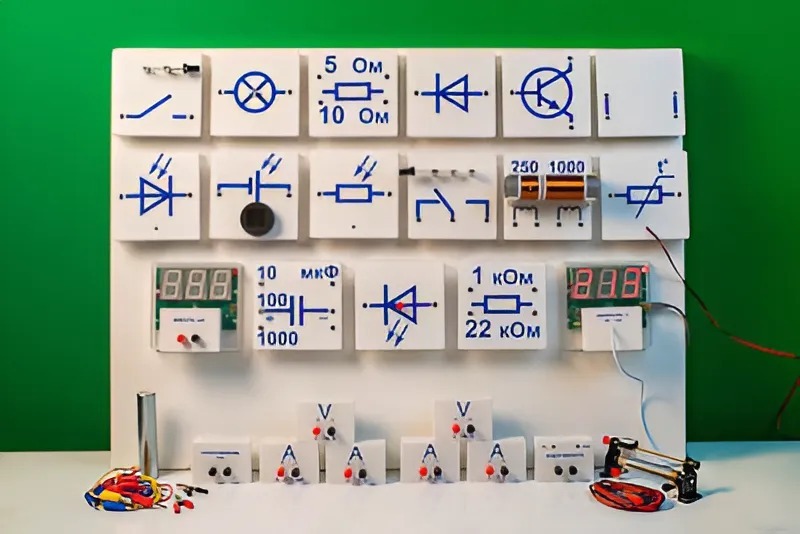 Каждый модуль оснащен магнитами, что позволяет монтировать экспериментальные установки на поверхности магнитной доски.