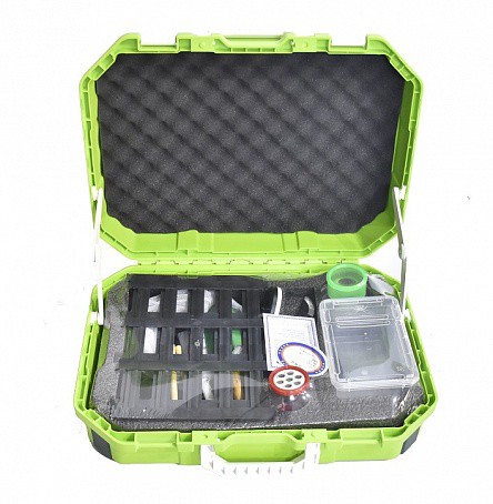 Переносной демонстрационный набор размещен в чемодане из прочного пластика и содержит необходимые материалы для выполнения не менее 5 экспериментов по данной теме: